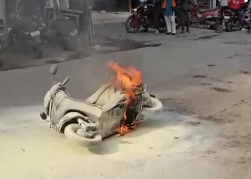 था. अचानक स्कूटी के नीचे हिस्से में आग लग गई. समय रहते स्कूटी सवार युवक ने स्कूटी से कूद कर अपनी जान बचाई.