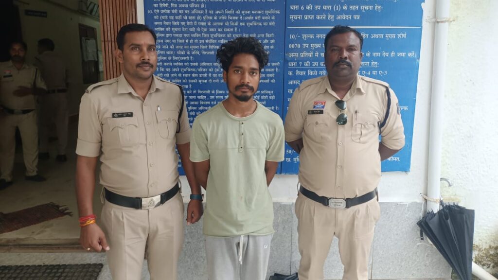 किनारे एक युवक जो अपने पीठ पर पिट्ठू बैग एवं साथ मे सफेद प्लास्टिक बोरा रखा था जिनमें कोई समान रखा दिखाई दे रहा था. उपरोक्त युवक बिना कारण पुलिस टीम को देख कर बोरा को वहीं छोड़कर बैग के साथ भागने लगा, जिसे पुलिस स्टॉफ के द्वारा दौड़ाकर पकड़कर घटनास्थल पर लाकर पूछताछ किया गया. संदेही द्वारा अपना नाम रोहित भगत आत्मज गोविन्द भगत उम्र 22 वर्ष निवासी कोपा थाना सन्ना